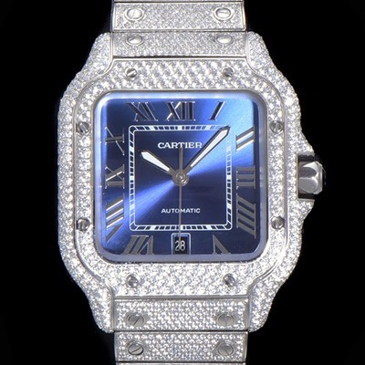 SA급 까르띠에 남성용 산토스 쥬얼 다이아몬드 셋팅 베젤 40mm 블루다이얼 오토매틱 무브먼트 CAR40187 xx