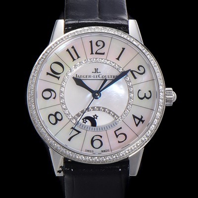SA급 예거 르꿀르뜨 여성용 랑데뷰 나잇&데이 문페이즈 오토매틱 898A 타입 무브 34mm 보석 배젤 가죽줄자게 화이트다이얼 jag5913 xx > 예거르꿀뜨르 레플리카