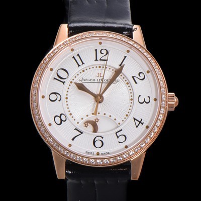 SA급 예거 르꿀르뜨 여성용 랑데뷰 나잇&데이 문페이즈 오토매틱 898A 타입 무브 34mm 금장시계 보석 배젤 가죽줄 화이트다이얼 jag9251 xx > 예거르꿀뜨르 레플리카