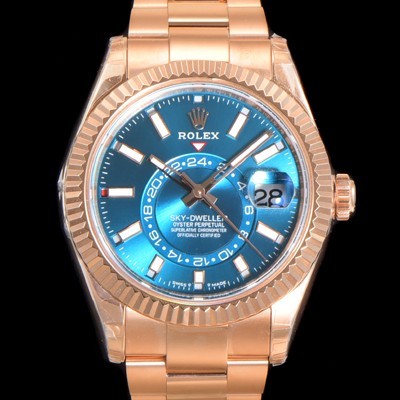Rolex Sky-Dweller Oyster Perpetual 42mm Mens 18K Rose Gold Automatic Cal.9001 Type Blue Dial