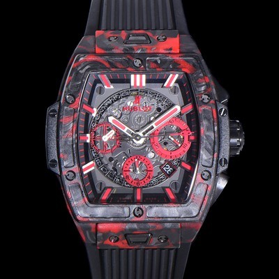 • SA급 휴블렛 남성용 스피릿 빅뱅 마스터피스 카본제질 크로노그래프 Hub4700타입 45mm 러버우레탄줄 스켈래톤다이얼 hub2195 xx