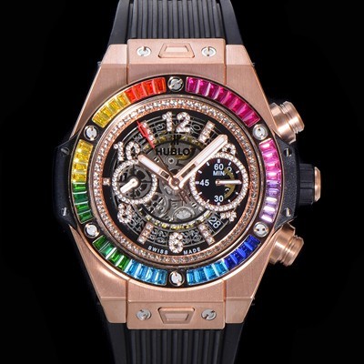SA급 휴블렛 남성용 빅뱅 유니코 45mm 오토매틱 HUB1280 타입 18K 로즈골드 다이아몬드 베젤 러버줄 스켈래톤 다이얼 hub1253 xx > 위블로 레플리카