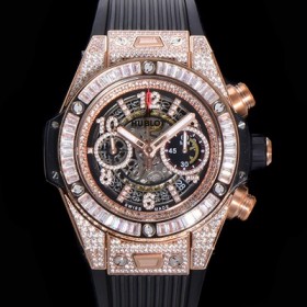 SA급 휴블렛 남성용 빅뱅 유니코 45mm 오토매틱 HUB1280 타입 18K 로즈골드/다이아몬드 풀케이스 러버줄 스켈래톤 다이얼 hub3259 xx > 위블로 레플리카