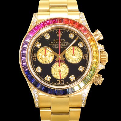 • SA급 로렉스 남성용 데이토나 오이스터 다이아/큐빅 ETA7750-2 타입 오토매틱 크로노그래프 40mm 18K 옐루골드 블랙다이얼 rol0986 xx