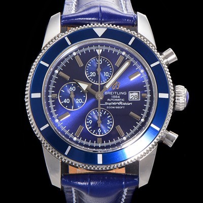 • SA급 브라이틀링 남성용 슈퍼오션 해리티지 크로노그래프 ETA7750-2 타입 오토매틱 46mm 가죽줄 블루다이얼 bre6946 xx