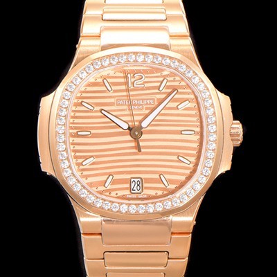 SA급 파텍필립 여성용 노틸러스 7118/1200R-010 레이디스 오토매틱 Cal.324 S C타입 35.2mm 다이아셋팅 18K로즈골드 골드다이얼 pat2846 xx > 파텍필립 레플리카