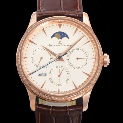 SA급 예거르꿀뜨르 남성용 마스터 울트라 퍼페추얼 캘린더 18K 로즈골드 오토매틱 MC868 타입 39mm 가죽줄 다이아몬드베젤 문페이즈 아이보리다이얼 jag20778 xx > 예거르꿀뜨르 레플리카