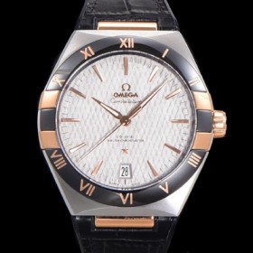 SA급 오메가 남성용 1:1수제공정! 무브UP 컨스틸레이션 코-엑시얼 마스터 오토매틱 Cal.8900타입  41mm  18K 로즈골드 가죽/우레탄 믹스 그레이다이얼 omg47497 xx