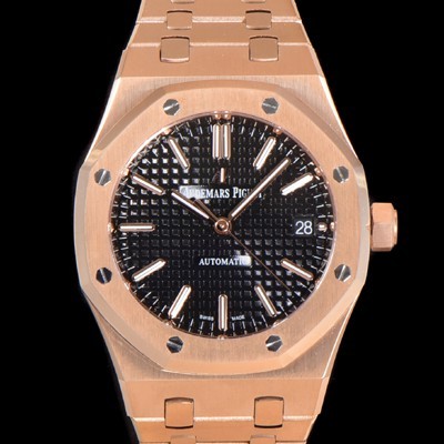 Audemars Piguet Men's High-End 37mm Royal Oak black Waffle dial 18K rose gold Cal.3120 Automatic Movement