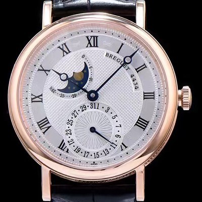 Breguet Classique Men's Watch 18k Rose Gold Case Moonphase White Texture Dial Automatic Movement