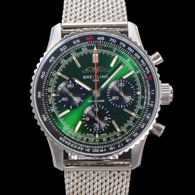 SA급 브라이틀링 남성용 네비타이머 AB0137241L1A1 크로노그래프 ETA7750-2 타입 오토매틱 43mm 그린 다이얼 bre6000 xx 요약정보 및 구매