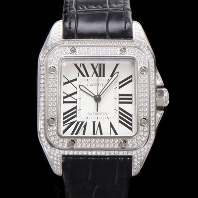 • SA급 까르띠에 남성용 산토스 100 베스트 에디션 W20073X8 미듐 모델 화이트 골드 풀다이아몬드 셋팅 오토매틱 무브먼트 CAR4010 xx