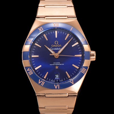 Omega Men's 1:1 handmade! Move UP Constellation Co-Axial Master Automatic Cal.8900 Type 41mm 18K Rose Gold Metal Strap Blue Dial