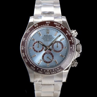 Rolex Men's Cosmograph Daytona Platinum Ceramic Bezel 40mm Chronograph 7750 Automatic Movement Baguette Ice Blue Dial