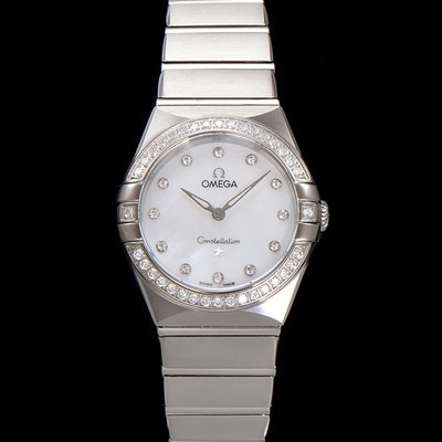 SA급 오메가 여성용 컨스틀레이션 131.15.28.60.55.001 다이아몬드 세팅 베젤 28mm 쿼츠 무브먼트 화이트 자개 다이얼 omg0145 xx > 오메가 레플리카