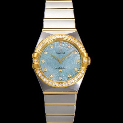 SA급 오메가 여성용 컨스틀레이션 131.25.28.60.60.001 옐로우골드 다이아몬드 세팅 베젤 28mm 쿼츠 무브먼트 그린 다이얼 omg0149 xx > 오메가 레플리카