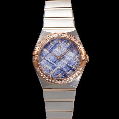 Omega Women's Constellation Rose gold diamond set bezel 28mm quartz movement meteorite dial