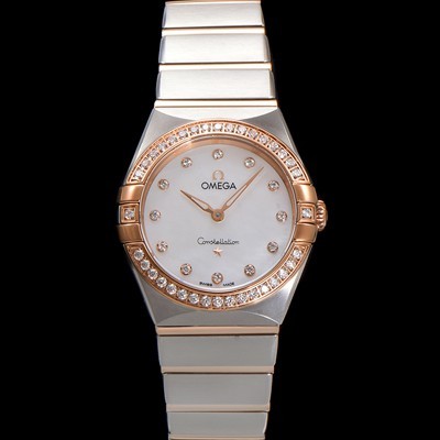 SA급 오메가 여성용 컨스틀레이션 131.25.28.60.55.001 로즈골드 다이아몬드 세팅 베젤 28mm 쿼츠 무브먼트 화이트 자개 다이얼 omg0152 xx > 오메가 레플리카