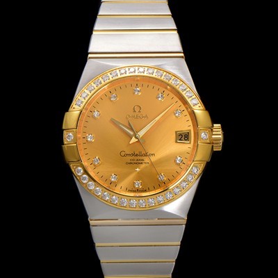 SA급 오메가 남성용 컨스틀레이션 123.25.38.21.58.001 18k 옐로우골드 다이아몬드 세팅 베젤 38mm 오토매틱 8500타입 샴페인 다이얼 omg0158 xx > 오메가 레플리카