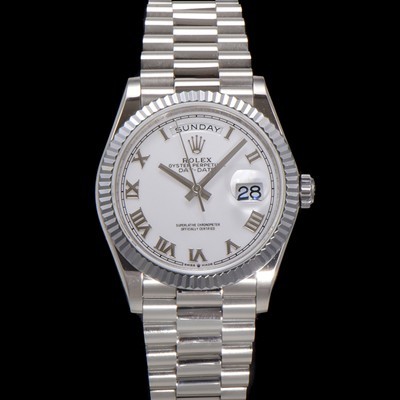 • SA급 로렉스 남성용 New 데이데이트 m128236-0017 무게173g 플래티넘 프레지던트 36mm 오토매틱 Cal.2836-2 타입 화이트 다이얼 rol5412 xx
