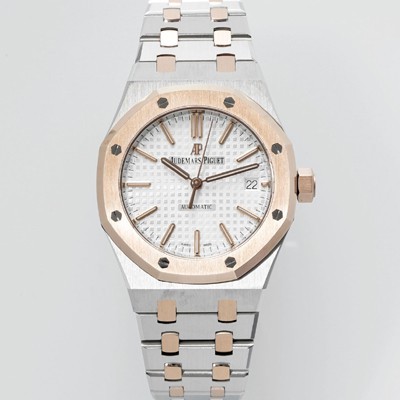 • SA급 오데마피게 남성용 하이엔드 15450ST 로얄오크 18K 로즈골드 37mm 오토매틱 Cal.3120무브먼트 실버 와플 다이얼 aud6523 xx