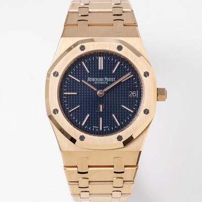 SA급 오데마피게 남성용 하이엔드 로얄오크 15202OR.OO.1240OR.01 엑스트라 씬 18K 로즈골드 39mm 오토매틱 Cal.2121타입 블루 다이얼 aud6570 xx