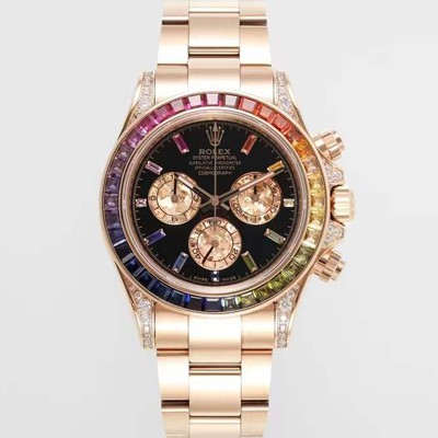 • SA급 로렉스 남성용 데이토나 레인보우 116598 RBOW 크로노그래프 18k 로즈골드 40mm 오토매틱 Cal.4130타입 블랙 다이얼 rol5433 xx
