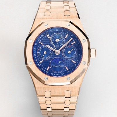 SA급 오데마피게 남성용 로얄오크 26574 퍼페츄얼 캘린더 문페이즈 18K 로즈골드 41mm 블루 다이얼 신형 5134 오토매틱 무브먼트 aud4212 xx 요약정보 및 구매
