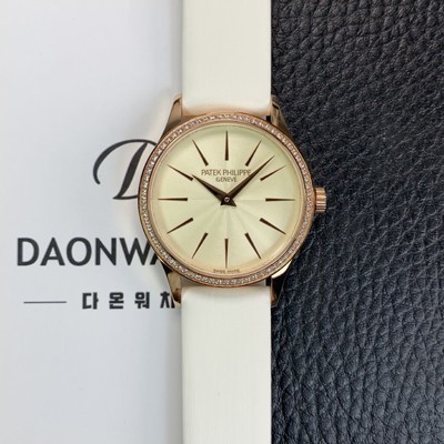 • SA급 파텍필립 여성용 칼라트라바 4897R-010 나토천/가죽줄 18K 로즈골드 33mm 오토매틱 Cal.324 타입 크림 다이얼 pat2250 xx