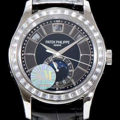 Patek Philippe Complications baguette-cut Diamond Bezel Annual Calendal Day-Date Moonphase Grey&Black Dial Cal.324 S C Automatic Movement