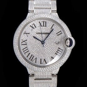 SA급 까르띠에 남성용 럭셔리 풀다이아셋팅!! 발롱블루 드 까르띠에 HP100562 "18K 화이트 골드,다이아몬드" 브릴리언트 컷 다이아몬드 오토매틱 무브먼트 CAR4021 xx