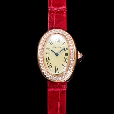 Cartier Women's Benoit 18K Rose Gold Silver Dial Alligator Leather Strap Quartz Movement