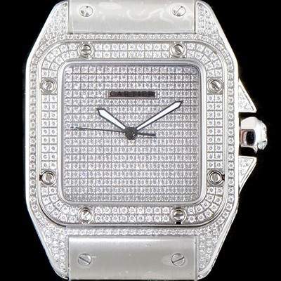 SA급 까르띠에 남성용 산토스 100 베스트 에디션 W20073X8 미듐 모델 화이트 골드 풀다이아몬드 셋팅 오토매틱 무브먼트 CAR4010 xx