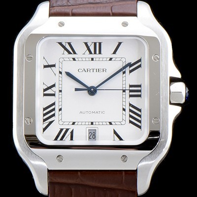 SA급 까르띠에 남성용 산토스 드 까르띠 WSSA0009 라지 모델-데이트 정품 동일 사이즈 실버 마감 오팔린 다이얼 오토매틱 무브먼트 CAR4000 xx > 까르띠에 레플리카