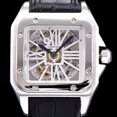 SA급 까르띠에 남성용 신상출시!!산토스 뒤몽 컬렉션 W2020018 18k 화이트 골드 스켈레톤 다이얼 오토매틱 무브먼트 CAR0110 xx > 까르띠에 레플리카