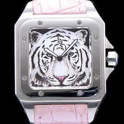 • SA급 까르띠에 남성용 산토스 시리즈 백호 다이얼 쿼츠 무브먼트 CAR0505 xx