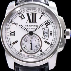 SA급 까르띠에 남성용 칼리브드 까르띠에 화이트 다이얼 블랙 레더 스트랩 오토매틱 무브먼트 CAR0018 xx > 까르띠에 레플리카