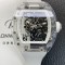 SA급 리차드밀레 남성용 RM055 트랜스파랜트 50mm 미네랄 크리스탈 기계식 수동형 무브먼트 화이트 스켈레톤 다이얼 ric0326 xx