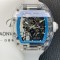SA급 리차드밀레 남성용 RM055 트랜스파랜트 50mm 미네랄 크리스탈 기계식 수동형 무브먼트 블루 스켈레톤 다이얼 ric0327 xx